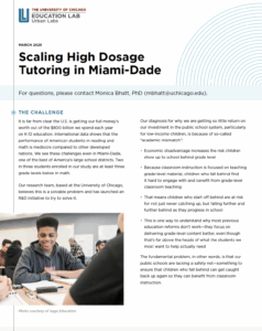 In the 2023–2024 school year, the Education Lab launched a partnership with Miami-Dade County Public Schools to deliver in-school, intensive math tutoring. This brief highlights preliminary findings from the first year of implementation.